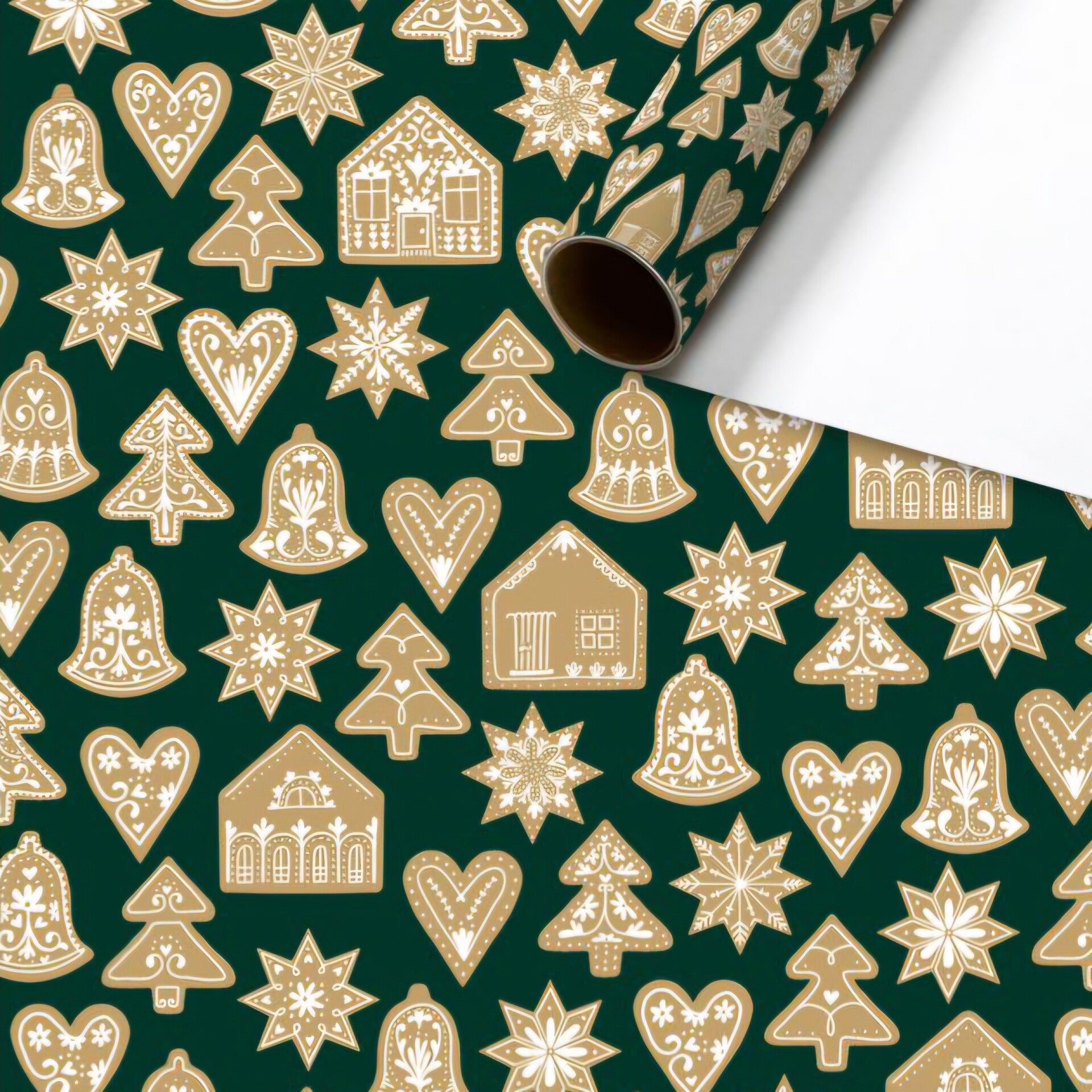 Inpakpapier - Kerst illustraties traditioneel groen | 70 cm breed